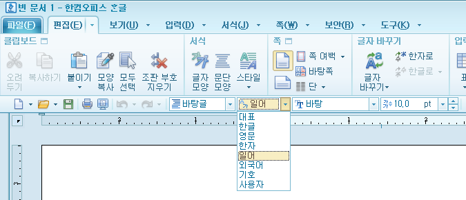 한컴오피스 한글을 사용하고 있다면, 글꼴 옆의 '대표'를 클릭하여 '일어'로 바꿔야지만 일본어 폰트가 표시됩니다.