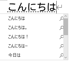 예측 단어 창에서는 Tab 키와 Shift+Tab을 이용하여 앞뒤로 움직일 수 있습니다. 물론 방향키도 사용할 수 있습니다